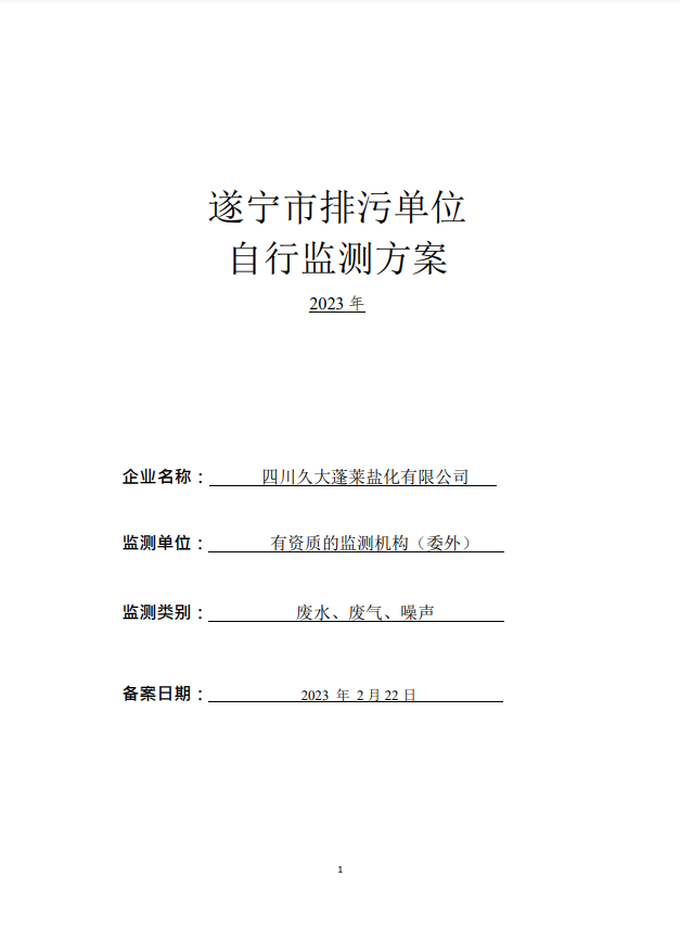 久大蓬萊鹽化2023年自行監(jiān)測(cè)方案